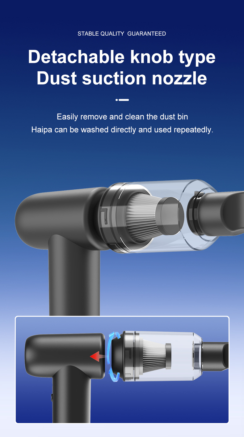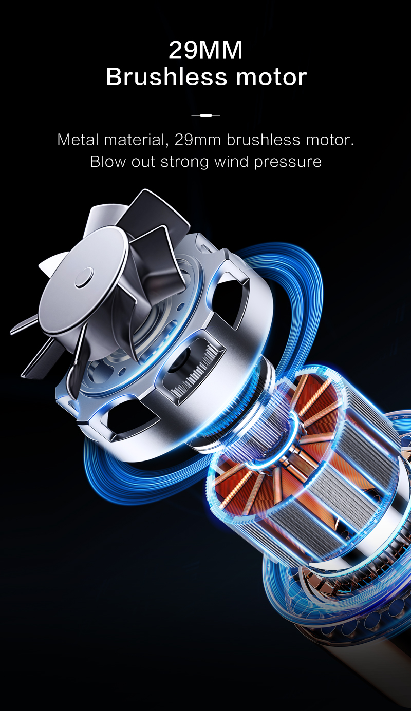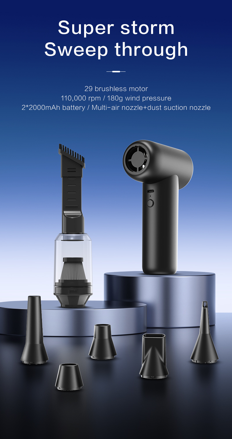 La velocità di rotazione ultraelevata di 110.000 giri/min consente una rimozione efficiente di detriti e polvere. La pressione dell'aria di 170 g garantisce una potente forza pulente, supportando la doppia funzionalità di aspirapolvere. Una batteria da 4000 mAh garantisce fino a 60 minuti di autonomia in prima velocità, per svolgere attività di pulizia flessibili. La costruzione in ABS con stampo privato garantisce la durevolezza del prodotto e una qualità superiore. La protezione dalle alte temperature a 75°C e la protezione dalle sovratensioni a 9V migliorano la sicurezza operativa. Numerose certificazioni internazionali (MD, MSDS, UAKC, PSE, ROHS, FCC, CE, UN38.3) convalidano l'affidabilità del prodotto.