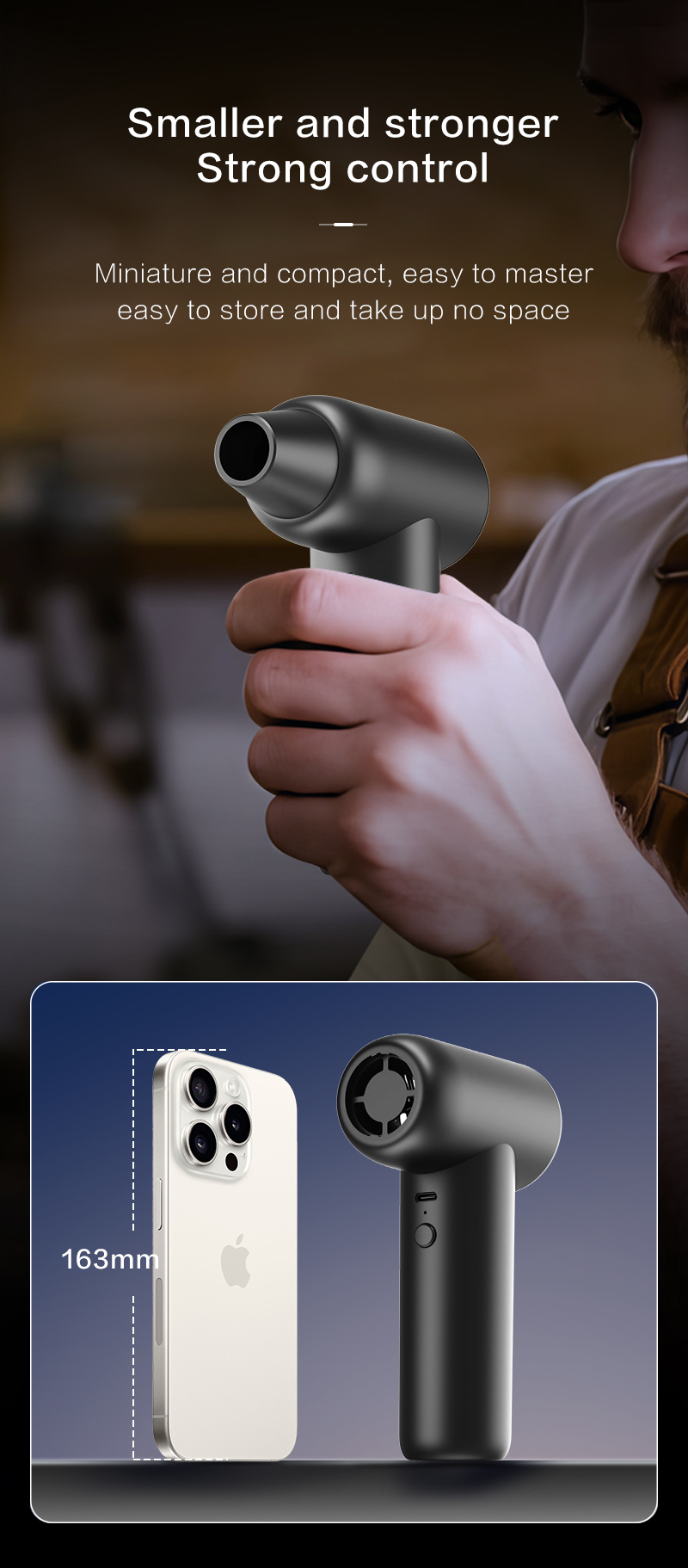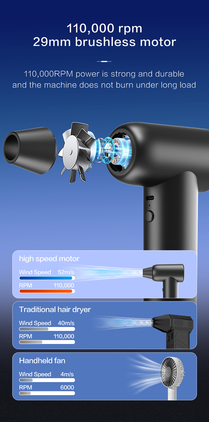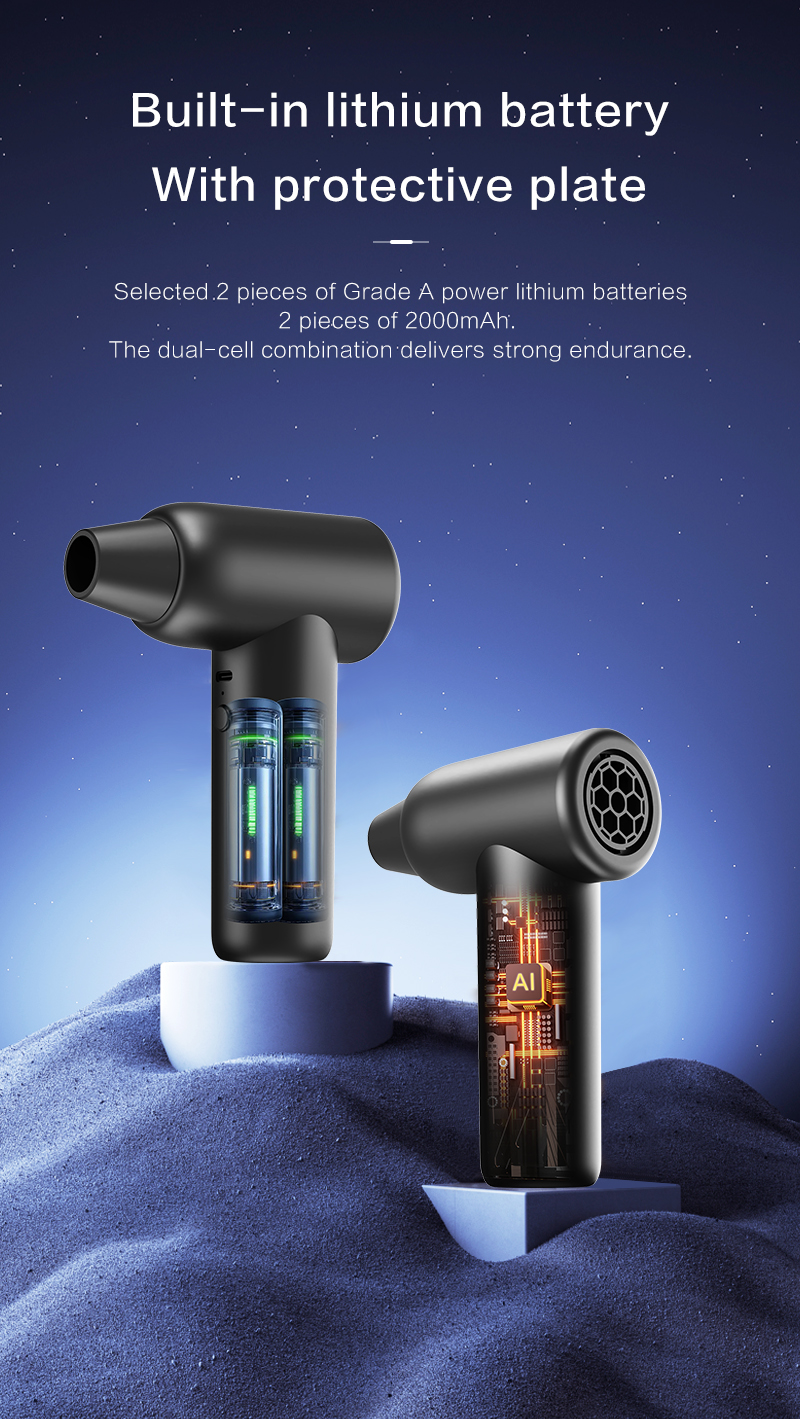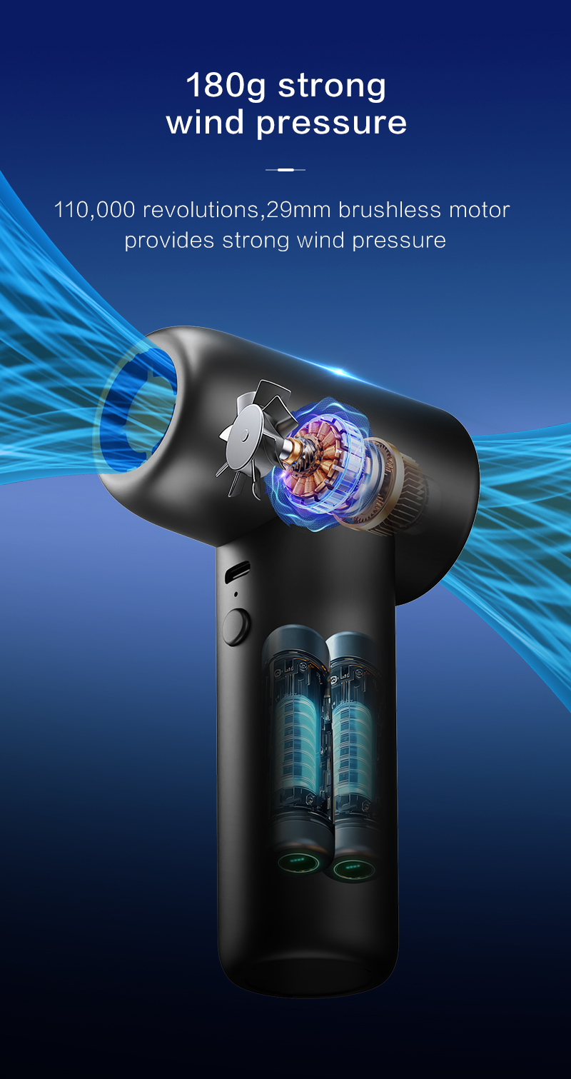 Ventilatore Violent ad alta velocità con 110.000 giri/min e pressione dell'aria di 170 g - Aspirapolvere e pulitore di detriti a doppio uso